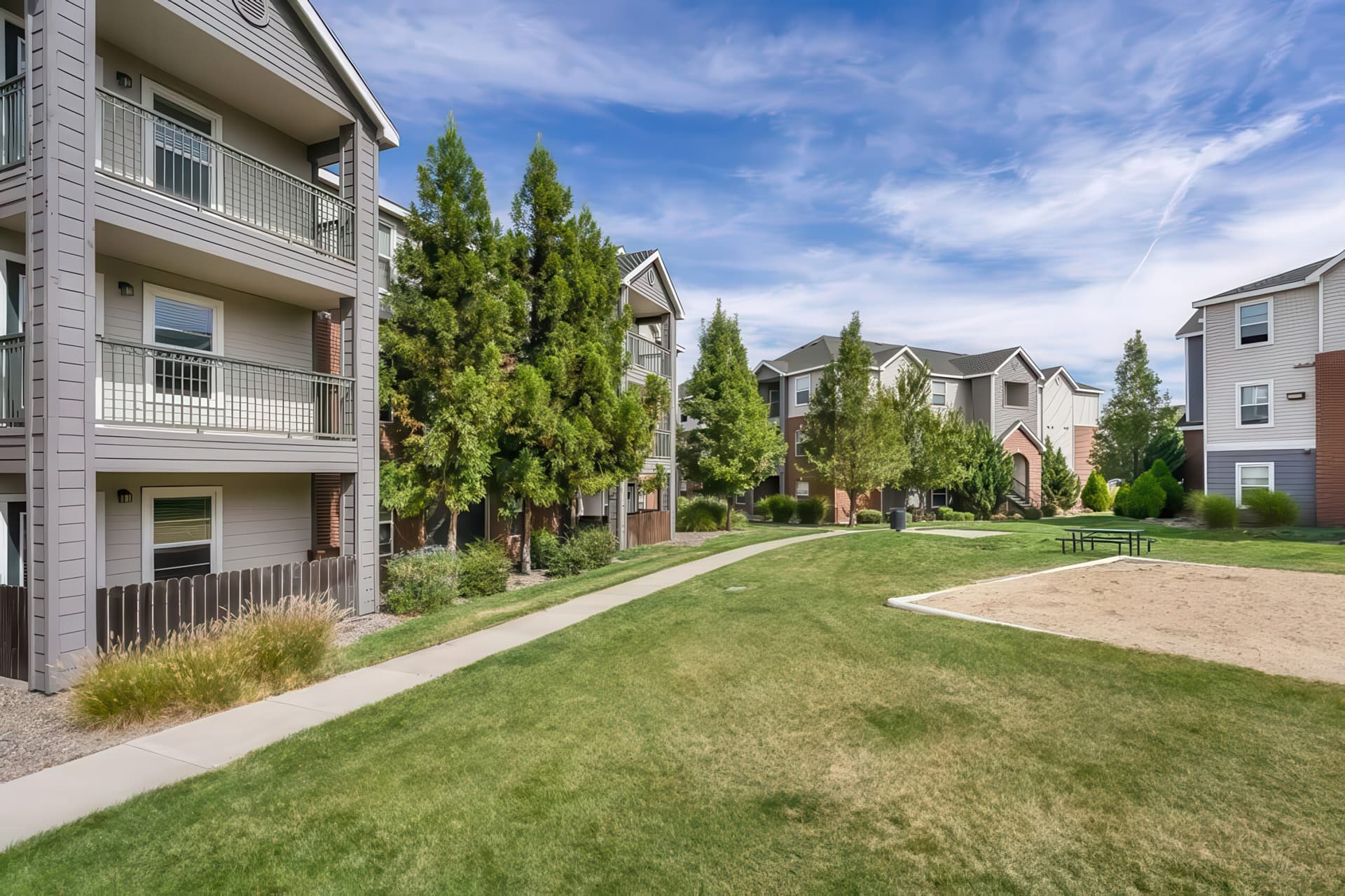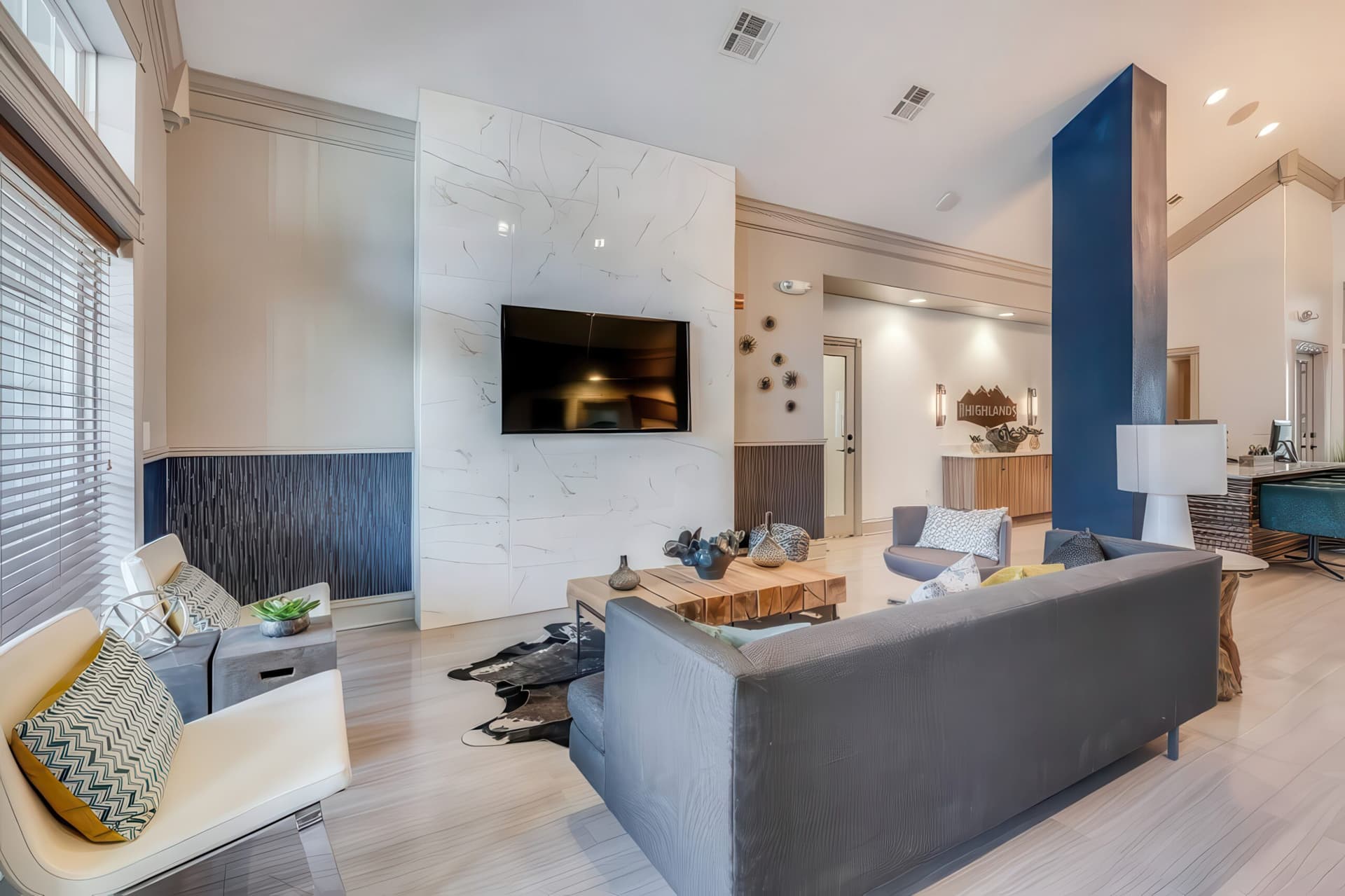 Community amenities at The Highlands include a resort-style pool and hot tub, sand volleyball and basketball courts, a 24-hour fitness center, business center and computer cafe, and is a pet-friendly community.